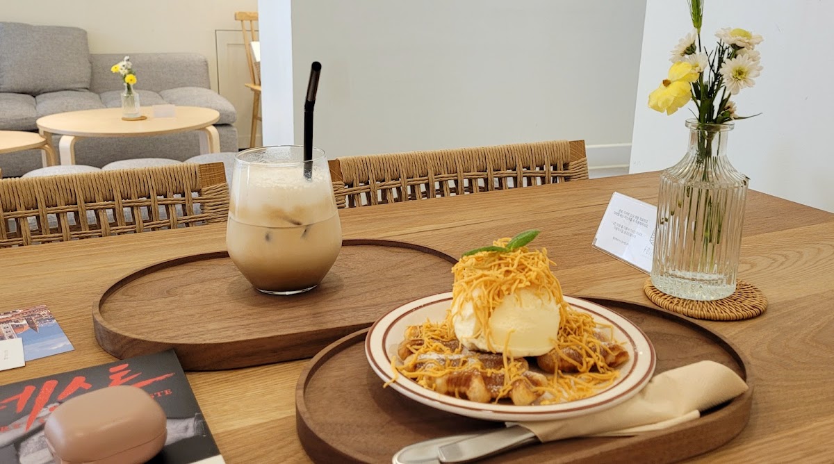 But it’s the menu that really captures the heart and taste buds. While the cafe offers a selection of delightful beverages, the real star of the show is the mouthwateringly delicious croffle – a unique hybrid of a croissant and a waffle that has won over many customers. One review describes it as nothing less than “개맛있음,” meaning “extremely delicious,” illustrating just how irresistible these treats can be.